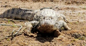 Jacaré-de-papo-amarelo é encontrado com sinais de maus-tratos em Tubarão