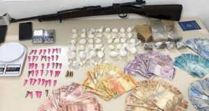 Dinheiro, drogas e fuzil calibre 7.62mm são apreendidos em Tubarão