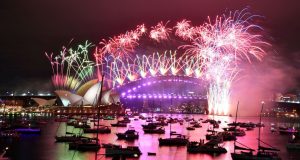 Fogos de artifício explodem no alto de ruas vazias, na Austrália