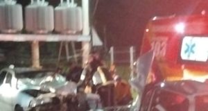 Colisão entre carros deixa vítima encarcerada na SC-445, em Içara