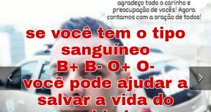 Família pede doação de sangue B+ para salvar a vida do...