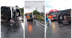 Motorista de caminhão morre após tombar veículo em ponte na BR-101,...