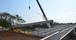 Segunda etapa de lançamento de vigas da nova ponte sobre o...
