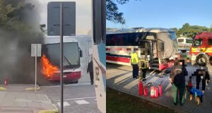 Ônibus que transportava estudantes pega fogo em Criciúma