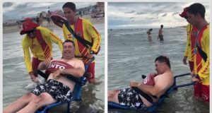 Guarda-vidas auxiliam pessoa com mobilidade reduzida