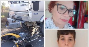 Mãe e filho morrem em colisão entre moto e caminhão