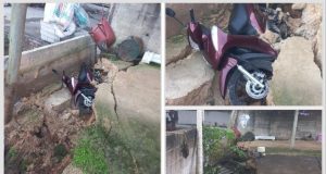 Barranco cede após escavação, muro desaba e moto é soterrada