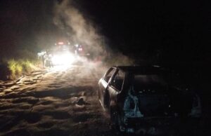 Carro com placas de Tubarão é destruído pelo fogo em Jaguaruna